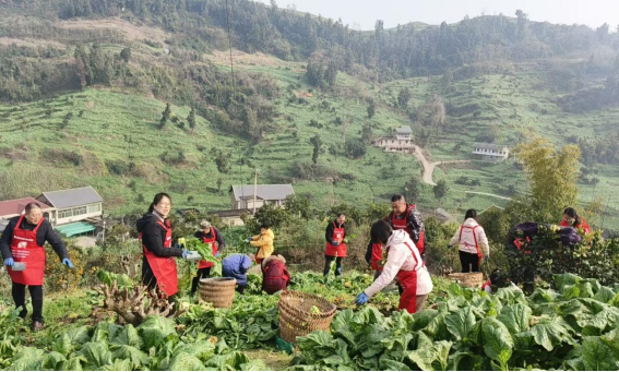 老人家望着堆放得整整齐齐的背篓,里边是小山一样的青菜头。他满是风霜的脸上露出了欣慰的笑容,连连向党员们道谢:“多亏有你们来帮忙,我们俩这老骨头真不知道该怎么办!感谢你们!感谢党!”