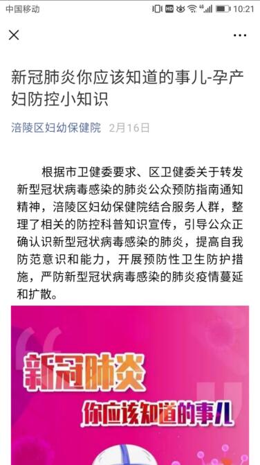 疫情期间,健康教育管理科充分发挥宣传号角作用,通过官网、微信公众号、宣传微信群、防控微信群等开展了一系列的新冠肺炎防控健康教育宣传和产妇儿童防控健康知识宣传,在醒目位置张贴预防新冠肺炎、认识新冠肺炎海报60余张,在门诊大厅以及病区摆放了《如何预防新冠肺炎》宣传折页1000余份,利用LED电子屏滚动播放新冠肺炎防控知识视频及宣传标语30余条、视频20余个,结合疫情特殊时期,指导孕妇学校、儿童家长学校开展网络线上授课及咨询,乳腺科、新生儿科、妇女康复与产后保健科均开通妇女儿童防控知识及健康教育咨询热线,同时聚焦公众优生服务需求,对女性婚前、孕前、孕期、产期以及新生儿、儿童等各时期健康知识进行了宣传。