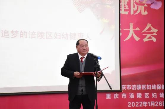 大会由党委副书记、院长胡章勇同志主持。在院党委书记秦德明同志所作的《致敬追梦的涪陵区妇幼健康人》致辞中拉开帷幕。秦德明总结了我院2021年绩效目标任务完成情况及取得的显著成绩、辖区妇幼健康管理工作情况、存在的主要问题和改进目标,对2022年工作提出展望和思路。他指出,新的一年要有新要求、新目标、新征程,我们唯有踔厉奋发、笃行不怠,努力前行,以优异的成绩向党的二十大胜利召开献上我们妇幼健康人的真心和真诚!