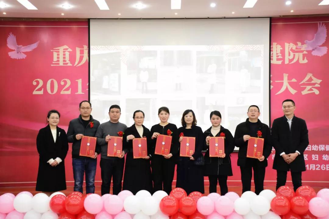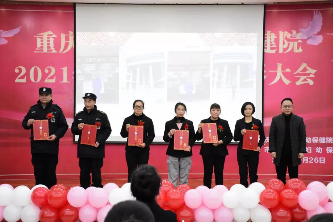 会上,胡章勇宣读了表彰文件,院领导对全院评选出的2021年度先进集体、优秀管理者、优秀医务工作者、优秀家属、保障服务优秀奖、基层妇幼健康工作先进集体和先进个人依次进行了颁奖。